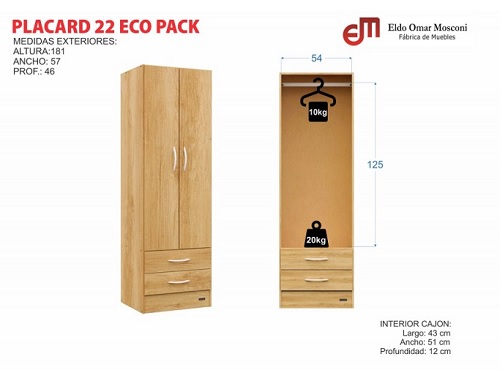 Placard | 2 Puertas y cajones | 57 cm | Mendra | Mosconi