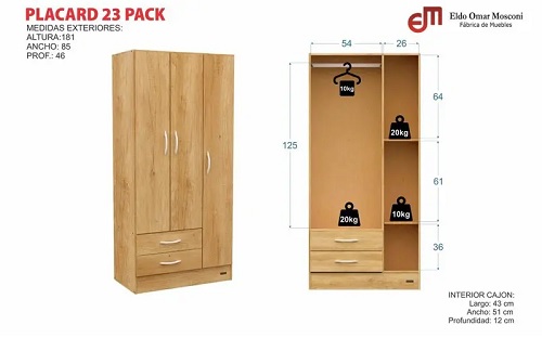 Placard | 3 Puertas y cajones | 85 cm | Bambu | Mosconi