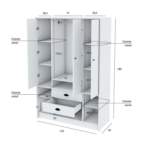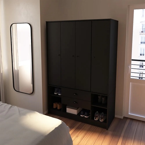 Placard | 4 Puertas y cajones | 120 cm | Negro | CENTRO ESTANT