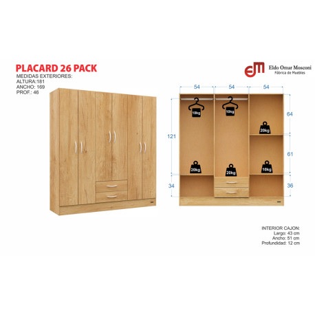 Placard | 6 Puertas y cajones | 169 cm | Bambu | Mosconi